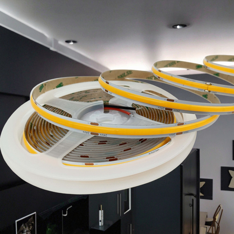 उच्च गुणवत्ता वाले इनडोर प्रकाश 12 वी 24 वी 5 डब्ल्यू 90 स्लिम 4 मिमी 400 लड कोब एलईडी स्ट्रिप लाइट